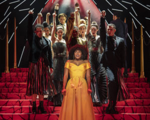 To make the pre-Broadway musical even more of a cult item, add the music of one Elton John ( who paid the show a visit earlier this week) and lyrics by Shaina Taub. I was impressed with the way the stage play followed the storyline allowing the person who has no knowledge of the book or movie to still understand the storyline. The story is about the fashion industry and the people that control it. Andy Sachs (an incredible Taylor Iman Jones) is a young want-to-be writer who lands a job as a second assistant at a fashion magazine in New York. The magazine is “Runway” and it is run by Miranda Priestly (Played to perfection by Beth Leavel). Her first assistant , who is Andy’s boss is Emily Charlton (deftly handled by Megan Masako Haley).