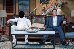 His wife, Theresa ( played by Sandra Marquez) has gone on a trip, but surprise- she does come back in the second act to bear witness to her “husband” doing things that he should not be doing. This is part of the “farce”- slamming doors ( set designer Todd Rosenthal has done himself proud with this masterpiece), mistaken identities, mis-understandings and all the characters being not what they are supposed to be. Again, not wanting to give it away, I will only tell you that all the ingredients of a true “farce” ( in the glory days of “Getting Gertie’s Garter”, “Up In Mabel’s Room”, “Critics Choice” and one that most modern- day theater people know “Lend Me A Tenor”) is designed to make us laugh and despite the script being a little weak, under Landau’s direction this cast did it with true style. Hats off to Karen Rodriguez, Andy Nagraj, Dan Plehal, Jame Vincent Meredith, Whit K. Lee, Audrey Francis and Chicago favorite Ora Jones. Wow, what a cast.