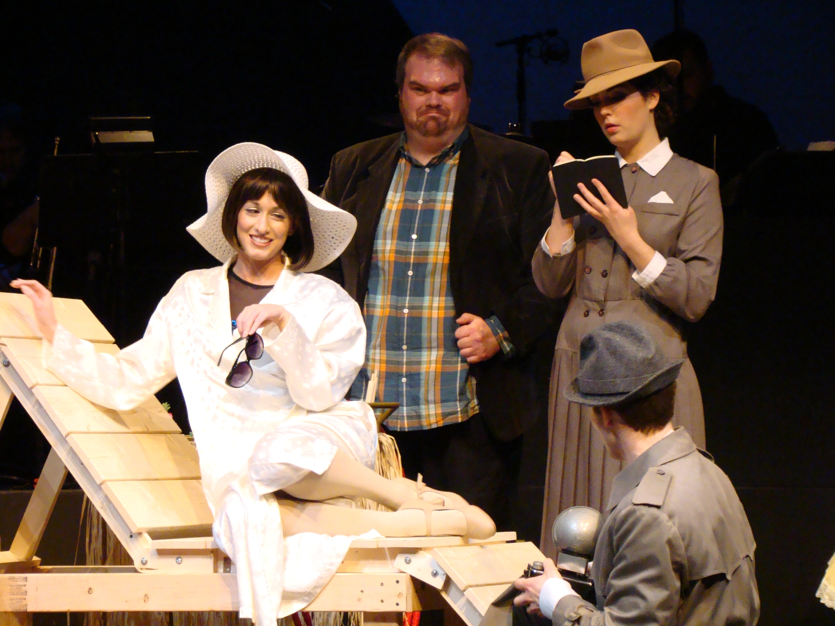 The story is filled with characters, or as one audience member said caricatures; gangsters, movie stars, wannabe movie stars, showgirls, a butler and many others who propel this Tony Award winning musical to a theatrical experience. We are going to a wedding! Starlet Janet Van De Graaf ( a superb job by the very talented Shari Mocheit) is about to wed Robert Martin (deftly handled by Ryan Dooley). Janet’s Broadway producer, Feldzeig (played to perfection by John Gurdian) will lose his backers if this happens so it is his job to stop the wedding. His gangster investors have sent two hit men, disguised as bakers (Dominic Rescigno and Colin Funk) to let him know that if she does marry, his follies will lose its backing.
