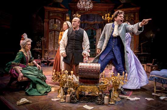 No matter how your day was, if you enter the CST to see this production, you will leave with the largest of smiles on your face (and also in your heart). You will have the time of your life. This company understands the “farce”, and knows how to play the audience- well! The set (Kevin Depinet) is handsome and practical. They even dig up the stage searching for hidden treasures. The costumes (David Woolard) are very period. The lighting (Christine Binder) and sound (Richard Woodbury) as well as the wigs and make-up (Melissa Veal) are the finishing touches on a perfect production. Just a little less than two hours in total time. Two hours of pure heaven.