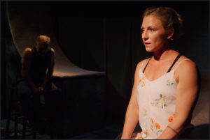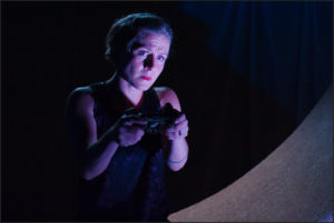 The technical side of this production is very simple allowing us to focus on the actors and their characters. The set (Joanna Iwanicka) is quite simple, using several carpeted, almost circular areas that can be taken as bed, couch or chair. The lighting (Cat Wilson) creates the moods as I am sure the directors called for and each one works! Barry Bennett’s sound and original music is striking and truly helps in conveying the story that Lathrop has brought to us and Jamie Karas does a great job with the props.