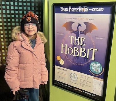 While most of their productions are more musical, than this one, there is some music which helps to move the story ( or should I say stories) along, provided by Sam Shnakman and Adam Nigh are onstage , in full view, but once the action begins, one hardly notices they are there at all. This production has five actors playing a myriad ( that is many) of roles. The main character is Bilbo ( an incredible performance and character study by Teddy Gales. He is the story hero as he is visited by “dwarfs” and goblins and such, all played by the ensemble of actors : Travis Ascione, Genevieve Corkery, Alex Benito Rodriguez and the incredible Dakota Hughes ( who plays Gandalf, Gollum and a host of goblins, dwarfs and more. Hughes is a solid character performer that one might see in many different venues. Always solid.If you know the books, you will know about the key, the caves, the ring, Smaug, Balin, Bard, Thorin and I must say, as presented on the set ( (Jaqueline Penrod), with great lighting by Bridget Williams, amazing fight direction by Kira Nutter, and adorable costumes by Cindy Moon.Sam Lancaster, who handled the props had his hands full, as there were a great deal of items that had to be assembled and then placed in the right sections of the stage area to keep the pace moving. This is 90 minutes with no intermission, and I am pleased to say that the packed house with many youngsters was as perfect as one can hope at a theater for young people performance. The story was captivating and the players perfect.As everyone knows, when seeing a play that is geared for a youthful audience, I try to take a youngster with me ( along with a parent) in order to ensure that my readers get a perspective from a younger audience member, rather than an “octogenarian”. This was written by and with Anna by her mother, who joined me today at this slick production.Seeing The Hobbit at the Greenhouse Theater was a wonderful experience for both me and my 8-year-old daughter, Anna. Neither of us had read the book or seen any version of the story beforehand, so we walked in with zero expectations, and that actually made the experience even more fun.The actors were truly incredible. Each performer played multiple roles, and they did so seamlessly. The costume design deserves special praise, every character was clearly defined, and there was never a moment of confusion about who was who, even as actors shifted from one role to another. A highlight for me was when the actors came together to create the Dragon. Anna especially enjoyed Dakota Hughes, who played Gandalf (along with several other roles). Gandalf quickly became her favorite presence on stage.When I asked Anna what her favorite part was, she thought for a moment and then said, “I liked all the parts,” which feels like the highest compliment an 8-year-old can give. She did note that there were a few moments that made her jump, so she wouldn’t recommend it for very young children, but she thought it was perfect for kids ages 6 and up. Overall, this production was engaging, imaginative, and a wonderful introduction to The Hobbit for newcomers of any age.