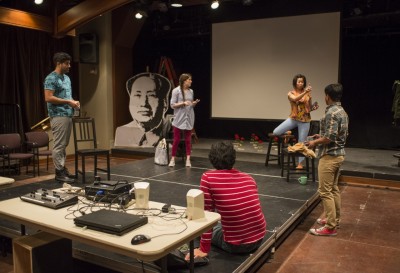 The Hundred Flowers Project” is meta-theatre (a play about itself)—a definite theme this season for Chicago’s storefront theatres. In the first act, a tyrannical but dynamic artistic director, named Mel (Mia Park), tries to write and produce a play about the Cultural Revolution in China. She encourages the members of her cast to contribute their ideas during discussions in real-time, and catalogue them electronically on a shared document database, but it becomes clear that she is interested in possessing sole control and influence over the play, and she suppresses dissent. For this act, the technical aspects of this play: lighting (Sarah k. Hughey), special effects (Michael Stanfill and Peter J. Storms), setting (Chelsea M. Warren), and costumes (Izumi Inaba) are all played-down. After all, how hard is it to make a theatre company look, sound, and feel like a theatre company, but it the second Act, they are played up even if they were extremely basic and conventional. That said, theaters so often underuse these assets that it was nice to see them emphasized, and even their stock-nature helped highlight the abrupt shift from a pretty basic meta-theatrical piece in the first act to an extremely complicated theoretical narrative in the second.