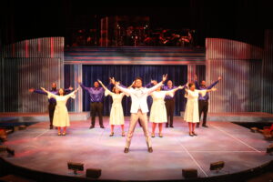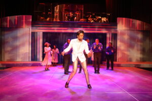 The cast surrounding Thomas is equally strong. Britt Edwards brings warmth and spunk to the role of Wilson’s wife, Freda. Rhonda Preston offers a grounded presence as Wilson’s mother, Eliza Mae, whose wonderful singing voice was the inspiration for her son’s talent. Solomon Langley convincingly plays the role of Sam Cooke, and Destin Warner delivers charm and humor as BB, Wilson’s loyal friend. Ensemble members include Dennis Dent, Vincent Jordan, Michaela Dukes, Raeven Carroll-Lavern, and Ben Woods. The score is a parade of nostalgia: “Baby Workout”, “Little Bitty Pretty One,” “Tweedlee Dee,” “He’s a Rebel,” “To Be Loved,” and “Lonely Teardrops”, among others. And the show builds toward the soaring “Higher and Higher.” Lyle Miller has done an outstanding job as the vocal arranger. Choreography by Breon Arzell is smooth and highly entertaining, not to mention accessible to the audience.