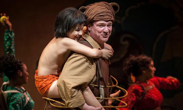 The orchestra, which moves about the stage and into the story itself during the two plus hours of this production is composed of 12 musicians and Doug Peck bringing us the sounds of India as our other designers have done with costumes,set and design of lighting- while we know we are not in India’s jungles, we can feel that during this two hours plus, we have been transported from Dearborn between Lake and Randolph to another place, a special place, one that brings a story of growth, honor and loyalty to our eyes and ears, and yes, to our hearts.