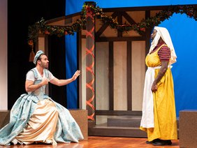 [rating=4]To quote Uncle Eddie from National Lampoon’s Christmas Vacation (because ‘tis the season), “This is just a real nice surprise.” I didn’t know what to expect from the world premier of award-winning playwright Catherine Trieschmann’s newest show, and I’m pretty sure I would have never imagined what I saw Sunday evening at the Milwaukee Rep. Charged with writing and directing a Christmas-themed production, Jules (character, not to be confused with the Rep’s director, Shelley Butler, who pulled everything out of this cast) stages a few variations of the nativity scene, looking to strike a balance between her creative nature and Father Juan’s more traditional perspective. It takes a few tries.