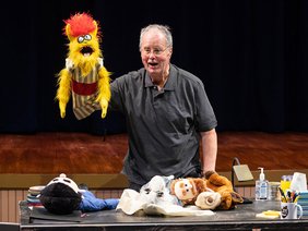 The first variation is difficult to describe. I’ll say this: there’s a lot of blood. The second variation is Shakespearean – sort of. And the third involves puppetry…and the most adult humor in a decidedly adult show. Like I said, I would have never come up with this myself, and I’m glad Trieschmann did.
