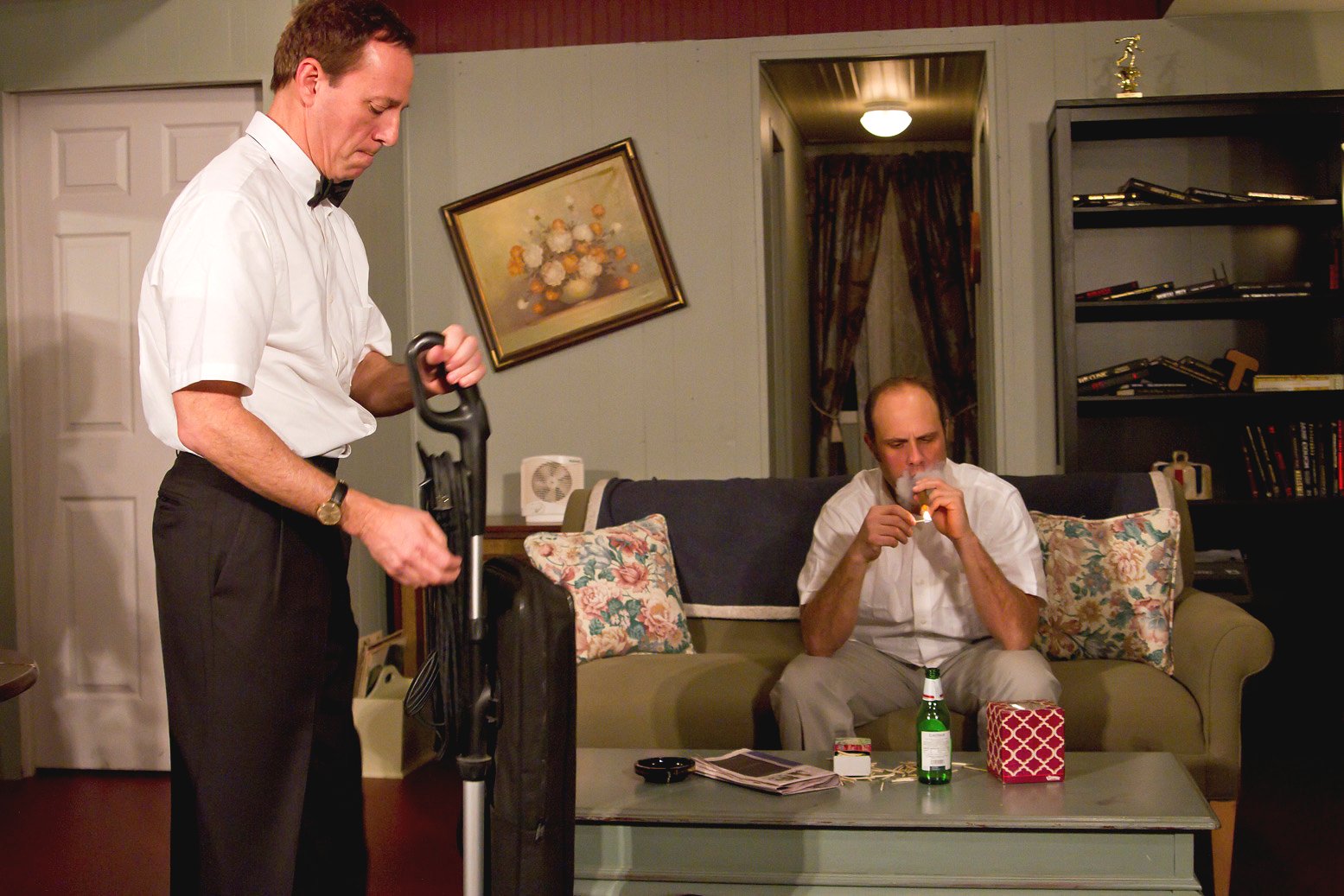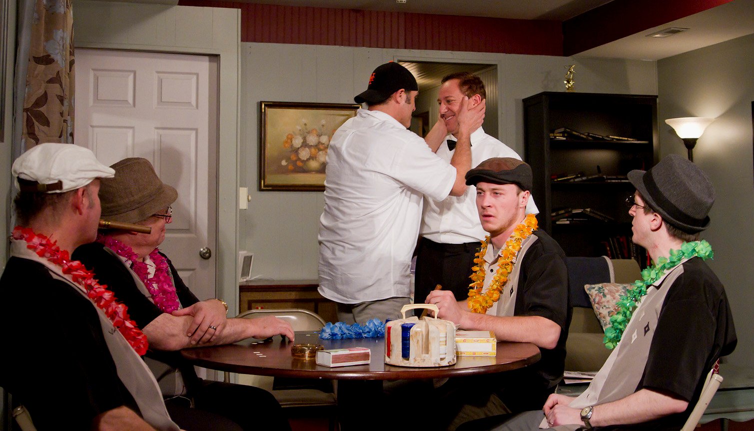 The poker buddies who start the show and end the show are a group of men who set the pace for the two men and their characters. Vinnie (Zach Bloomfield), Roy (Michael Dalberg), Speed (Grant Niezgodski) and the very loveable Murray (deftly handled by Rob Weinstein) work well as a team. Speaking of teams, it seemed starnge that these men had what one might call “poker shirts”. Yes, they were wearing what could be Bowling Shirts ( like they were a team) to play poker. I have never seen this in a production of this play, but it certainly gave them the flavor of a team. They also worked as a team in changing the scenes with the able-bodied stage manager Becca Holloway.