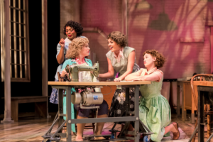 The set by Jack Magee is simply stated but works well. Being almost arena , one must design the set so that the people who sit on the sides have clear views of the action. This theater always makes sure this is the case. Brenda Winstead’s costumes are very 1950’s and the lighting (Guy Rhodes) and sound (David Kelepha Samba) are perfect. Since we are in the 1950’s, and hairdos were very different back then, the wig and hair designer Kevin Barthel brings us that era, to perfection. Last , but not least, on the tech side, Wendy Huber has assembled some wonderful props. This is a job truly well done. I believe that one of the sewing machines on the stage was my grandmother Ida’s.