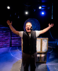 The play begins with us meeting the Narrator ( an amazing piece of work by Todd Wojcik, who not only tells us the story, becomes half of the class of 1982 revealing items of importance to the story). The Narrator introduces us to the main characters, to the town, the pavilion, and all of what takes place in our universe. The lighting (Levi J. Wilkin) and sound (Peter Wahlback) are also a part of the performance. Wojcik tells them what to do and when. Director Julian Hester is quite creative in the staging of this production utilizing a set (Chas Mathie) that allows for a complete transformation between the two acts. They end the first act by reversing the walls of the pavilion allowing audience members to move to the other side for the second act. Many made the move, but to be honest, it was not a problem remaining in my original seat. I heard and saw everything. The only problem was that since we were at a high school reunion, the band kept playing and at times overshadowed the actors. Never with Mr. Wojcik who is a hoot in all of the characters he brings to the story- just watching him is worth the price of the ticket.