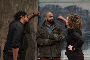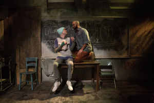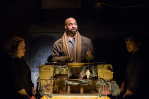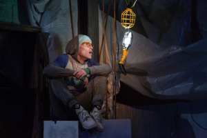 In the mix, we are given little puppet shows ( to be truthful, I did not recall these in the earlier production) and in the second act, there is an incredible scene where Tupolski tells her own “story” using the blackboard on the stage. This is about 20 minutes and is adorably funny and she truly shines in this scene. The stage area in this tiny theater is very small and narrow, but Lauren Nichols has designed what appears to be a basement that is somewhat decrepit, used for functions that are often brutal to those being questioned or disposed on. The other technical aspects of the production are smoothly handled. Sound ( Jeffrey Levin and Misha Fiksel ), lighting ( David Goodman-Edberg), costumes ( Izumi Inaba), props ( Jillian Gryzlak) and the puppetry by Daniel Dempsey. A special recognition for the violence and intimacy director in this one as Rachel Flesher and Zack Payne truly created some realistic works.