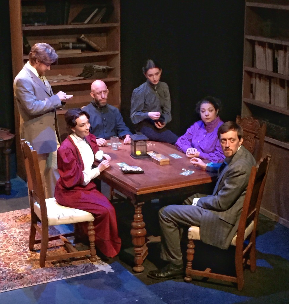 Director Jacylnn Jutting, although she sometimes struggled to block her actors effectively, has chosen a great translation by Christopher Hampton, and although she sometimes succeeds in the hardest task in Chekov ,which is to balance the highly comic nature of the character’s intercourse ,with the play’s tragic conclusion. She did an excellent job with the direction of the tech work as wel.l This is important as Chekov’s plays can be extremely hard to stage, especially in a smaller spaces, because they occur in more than one place. However, set (Pat Iven), Light Design (Julie Mack) and Property Design (Justin Atkinson) manage this admirably convincing us through various props and shades of lighting that we are either outside on the grounds of a vast estate or inside elegant dining rooms.
