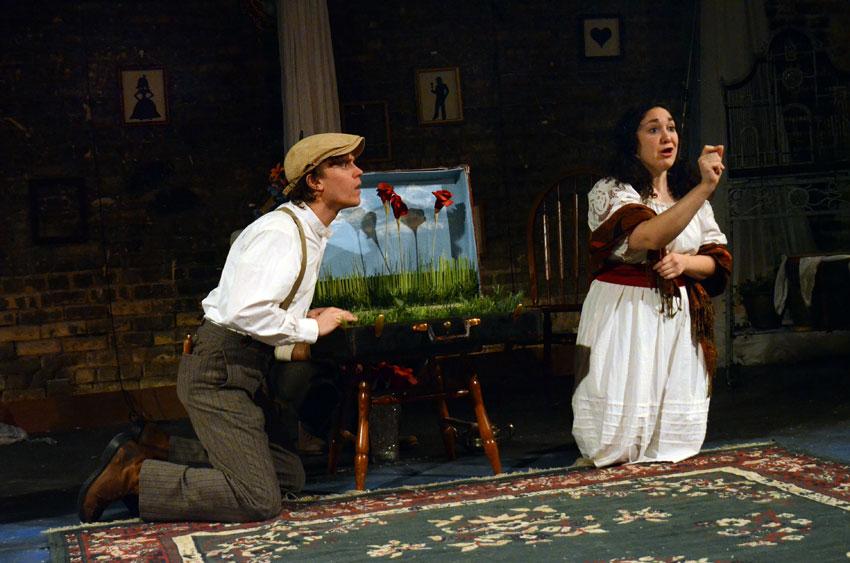 The new theater, located at 4041 N. Milwaukee Avenue was, in my days, a “Three Sisters” Women’s store and now, besides the theater , will be an artsy place in Portage Park. When you enter the theater for this production, you walk through an area where it appears that snow is falling ( I am not so sure, we  need any more snow), but it has a nice effect. The theater is a large space with seating set up on three sides and there are tables and chairs along the sides ( very cabaret style) and the actors/performers work with those who   are seated in these seats , even before the show begins. Understand that if you take one of these seats, you could very well be in the show!