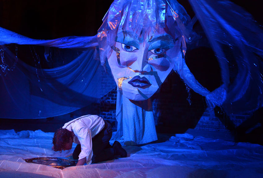 What this young and imaginative company has done is created a wonderful story with puppetry (Jeff Semmerling) that appeals to the kids as well as the adults ( who bring the kids) as they tell the story  of two young people, a boy , Kai ( a marvelous character developed by Christian Libonati) and a girl,  Gerda ( deftly handled by Mara Dale) who are separated by magic and then by even greater magic ( the magic of friendship, love and truth) find each other once again, and despite all odds, and obstacles find that true honesty with those we love is the greatest gift of all.