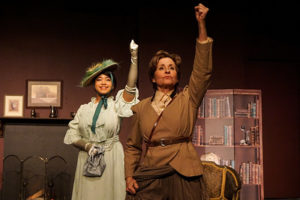 Artemisia Theatre rekindles the longstanding historical tension between mass versus class politics in Great Britain with their production of “The Suffrage Plays”, directed by Beth Wolf. The presentation consists of three distinct one-act comedies about the struggle for women in the United Kingdom to obtain the right to vote during the early 20th century. Two short plays written by Evelyn Glover and called “A Chat with Mrs. Chicky” and “Miss Appleyard’s Awakening” are followed in the second act by George Bernard Shaw’s one-hour “Press Cuttings.” Megan Delay, Lucinda Johnston, and Brittaini Yawn play various roles in all three plays as they depict women of various social stations who demonstrate their support of the suffrage movement—or their opposition to it.
