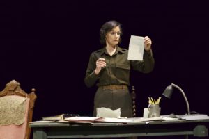 This is a 70 minute, deeply moving storytelling experience and when one looks into the eyes of Ms Cronyn, which is easy to do in the intimate space where the action takes place, we can see the feeling that the woman has for the charges she is supposed to assist in their transition. She is a “relief worker” and her assignment is to help these three youngsters feel that there is a life for them and they will be able to find “the American Dream”. Or will they? There is a letter that becomes an object that causes one to think “bad things”. She keeps going to it, but doesn’t open it until the end of her story. It bothered me for awhile and then I tuned it out. Let it be! It does become a part of the story, later!