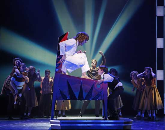 Under the skillful eye of Corti with a cast that is pure dynamite, this sterling production brings a story to life with the fantastic music created by Pete Townsend with a book that Townsend created along with Des McAnuff. The musical began as a record album that depicts the story of “Tommy” who as a little boy is witness to his father shooting his mother’s lover, after the father was released from a prisoner of war camp. The trauma that Tommy is thrown into makes him deaf, dumb and blind. His main form of communication becomes his ability to play the pin ball (he becomes the “Pinball Wizard”) as he becomes a star in our world.