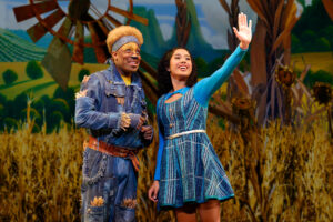 While “The Wizard of Oz” shines mor eon Dorothy that the other characters, “The Wiz” is truly a combination story about young Dorothy ( a wonderful performance by Phoenix Assata LaFreniere). She truly shares the stage with her OZ friends, The Scarecrow (Elijah Ahmed Lewis is terrific), the Tin Man ( deftly handled by D. Jerome) and the Lion ( Cal Mitchell is adorable). The road to The Emerald City to meet The Wiz ( Alan Mingo Junior is a stitch) is a trip for the audience as they encounter all sorts of possible reasons not to get the things they need : a brain, a heart, courage and of course, a trip back to Kansas!