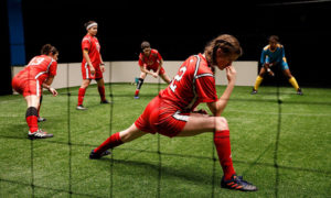 [rating=3] As someone who has spent many years around soccer, in particular, girl’s/women’s soccer, watching the Chicago premiere of Sarah DeLappe’s “The Wolves”, brought back some detailed memories of the days when my daughter played the game- on both house leagues and travel teams. While my son also was very involved, there is a major difference in the girl’s teams, and in fact, the girls themselves. This 90 minute production, which takes place on a practice field next to the actual field, allows us to meet the females of the team known as “The Wolves”.