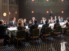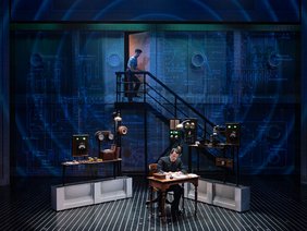 The play is 2 hours and 25 minutes, with one intermission, and you need it, the seats are just a little cramped, I and a lot of tall guests had to stretch. But this show, outdid Broadway, all new staging, with the use of projections and LED lighting, and the use of the ships walls and doors to compliment the set. My hat is off to Tim Mackabee, your scenic design made the entire how. The music director Dan Kazemi, and Joshua Clayton for Orchestrations, was excellent. The idea of using the players as silhouettes on the upper stage was pure genius.