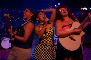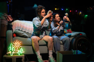 I do want to mention the amazing props that were assembled by Ab Rieve. They did a great job! The costumes (kClaire McKellaston, were perfect for a rock concert and the lighting (Ellie Fay) and sound ( Isaac Mandel) were spot on. The set design by Rose Johnson, is hard to explain, but there is a couch that represents a convertible as well as a couch and lots of items that are more props that truly help propel the show. I understand that the purpose of doing this show is to express that Theo is a space where people can share their queerness openly, loudly, and proudly ( to quote Divizio), but as far as I am concerned, this play doesn’t do it. I am open to hear from others as to what they feel.