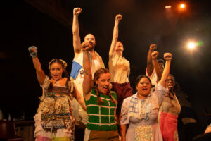 This show takes aim at every type of political power there is and shows how people can stand up against those who take on power that is not theirs to take. The songs are delightful and quite clever. The book by Greg Kotis is both charming and comical and his lyrics along with Mark Hollman ( who also wrote the music) is very hip to today’s world just as it was when first presented. The set ( yes, there is a set in this one at Theo) by Eleanor Kahn works despite the limited space to work with and the lighting (Ellie Fey) and sound (Harrison Hunt) as well as the costumes (Cindy Moon) are perfect. The musical direction by Aaron Kaplan was right on, as always and the musicians led by Kevin Zhou, perfection!