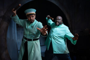I love this cast! Luke Nowakowski as Bobby brings the necessary innocence required but with a strength of determination and a fantastic voice that shows his power. Indeed, every voice in this Theo cast is strong and formidable as they always are at Theo…but a special shout out have to go to Little Sally strongly played by Maya Tanaka Allwardt, Mrs. Pennywise by Alicia Berneche both making their Theo debut (welcome aboard!) and Officer Lockstock who walks thru the narrative in a humorous and captivating way…played by Ryan Stajmiger.