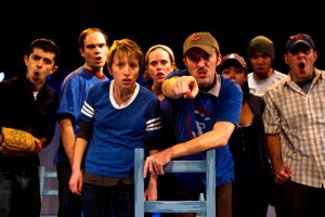 On the stage are a group of large screens and chairs- that is the set! To be honest, that s all that is needed. The videos (Nivan Yahaghi) bring the city to us with some actual interviews of Chicagoans which are interspersed throughout the small stories- The student who comes from Pittsburgh(Desmond Gray) and his adjustment. The bike messenger ( the adorable Cyd Blakewell), a wonderful sequence with some slick moments that are more choreographed than directed, The suburbanite ( George Zerante) who takes us on his first “L” ride with his family through his moving into the city to become an actor, the trials and tribulations of being a Cub fan and the Bartman experience, The writer/waiter (Behzad Dabu) and what happens to him as he writes a “blog” about his late night customers, The friendship-love affair between Molly ( Jessica London-Sheilds) and Doug ( Cody Proctor), another love affair, although very over between Kit ( Paige Collins) and Mark ( Clint Neagle, who also plays the boyfriend to Ms Blakewell) and the very heart rendering tale of Laura (the charming Sarah Gitenstein). This is a very solid cast, with all of its members doing ensemble parts in scenes throughout the 85 minutes- they are always there!