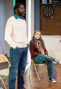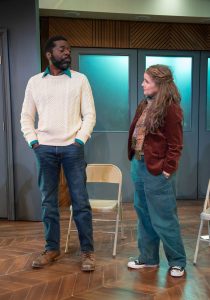 The cast of players is terrific. Vince, the strongest of them all is played by Chike’ Johnson. Issaiah is a superb character study played by Keith D. Gallagher, George, the youngest of the group who continues to fall off the wagon ( so to speak) is well developed by Jonathan Moises Olivares and the one female in the group, Andrea is played by Elizabeth Laidlaw. Together, along with Mr Butler and Ms Gilbert, we find ourselves in the grasp of these amazing characters and their stores. Under the smooth direction of Jackson Gay, we watch this cast some alive and feel that each actor is indeed the person they represent. Yes, the fourth wall is broken and we are indeed observing the lifestyles of the drunk and druggies trying to get their lives back on track, or not?