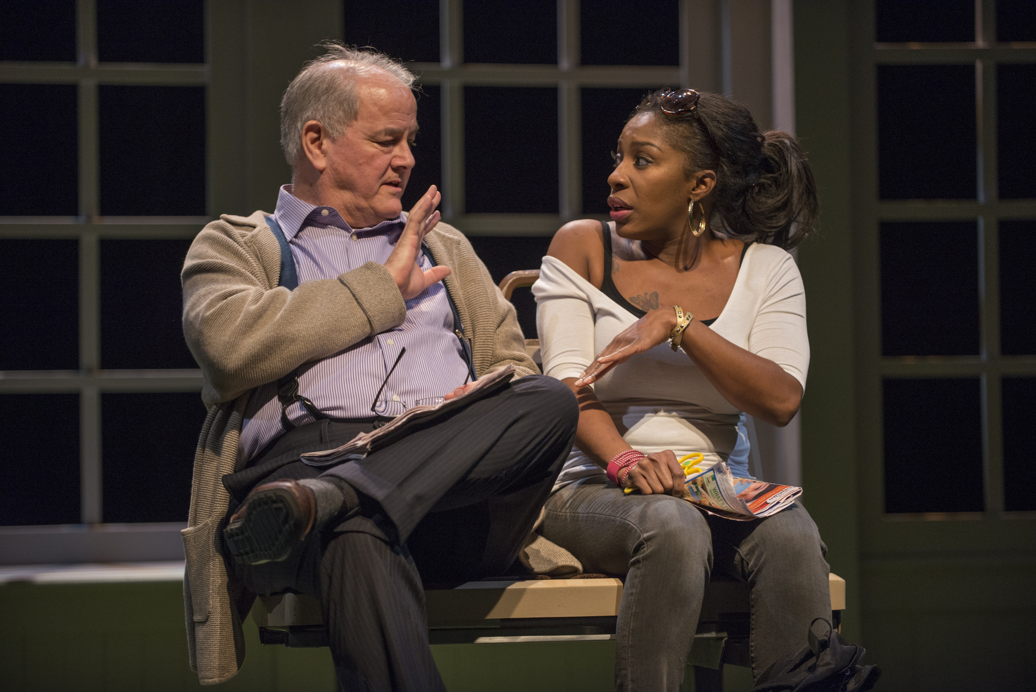 The others we meet are Christopher (deftly handled by Jordan Brown), who they have raised as a son and his wife, Molly (Amanda Drinkall), an upper class socialite who has always had the best of everything. Christopher is working on his Thesis for his Doctorate and the topic he has selected is the use of the African -American in commercials. A very interesting topic indeed and one that will wake you up to some facts of life. Now, let me get to the bus that is in the title, and the rider that Ray befriends on said bus, Shatique (a dynamite performance by Patrese D. McClain). Not wanting to destroy the mystery that Graham and Jones have woven into this production, I will only tell you that Shatique, who is an African-American single mom, is studying to better her life, for her son, who is living with her mother,so he can be in a better school. She has a brother who is in prison and the bus they ride each Saturday, is the one that goes to the prison. I think this where I stop on this topic!