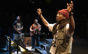 Around him, Glenn Davis (Marcus), Alana Arenas (scene stealing as First Lady, Miss Second and the Last One) and Esco Jouley (Eli) create a world that is realistic, yet haunting. Davis, in particular, brings an intelligence to the stage which helps sharpen and focus the play’s debate without diminishing it into simple argument.  The entire ensemble forces the production to control its power like taking a deep and difficult series of breaths.