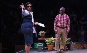 **** How much is a child worth? That is a question that is the subject matter for Tarell Alvin McCraney’s “Windfall” now on stage in the  Arena Style theater at Steppenwolf called “The Ensemble Theatre”. The seating in this venue makes it perfect for great sight lines, as the seats go from even with the stage and rise towards what is called the second floor. Part of having a theater like this is the limited set one can create to bring the illusions to light.