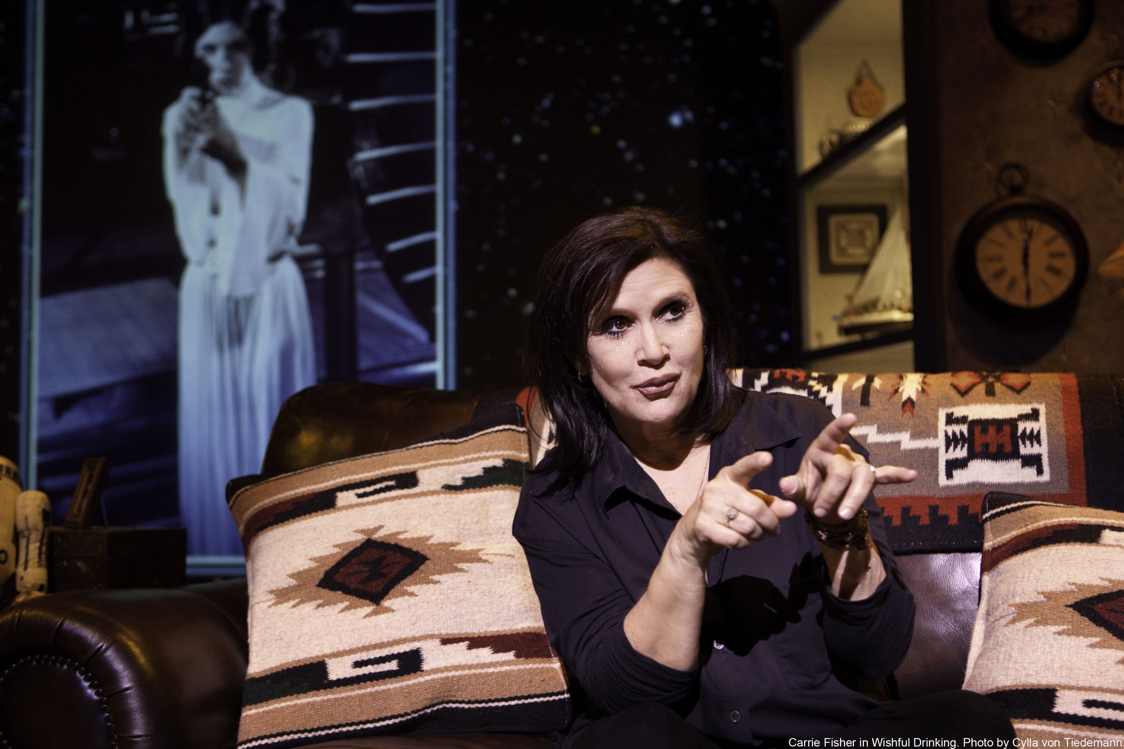 Highly Recommended I have had a “thing” ( like many people of my age group) for Carrie Fisher ever since she took on the role of Princess Leia in “Star Wars”. While this may have been a turning point in her career, what we learn of her life in her one woman “biography”, “Wishful Drinking” is how she has been able to make it through her bi-polarism, mental deficiencies and drug and booze addictions to be able to tell her story in a way that shows one can overcome the obstacles and continue forward. This two plus hour show is hysterical. When entering the theater, most of us wondered how it could possibly take almost 2 1/2 hours to tell her story- well it did and for the majority of the evening, we were is stitches. This is a fun-filled evening filled with information about her family life and her problems and what she is all about and at no time did I see anyone looking at their watches. I know that many people have seen her in movies ( other than her famous Leia) but as good as she is as an actor, she is an extraordinary writer and her sense of timing on stage in this production is outstading. She plays to and with the audience as she tells the story of how she became who she is.